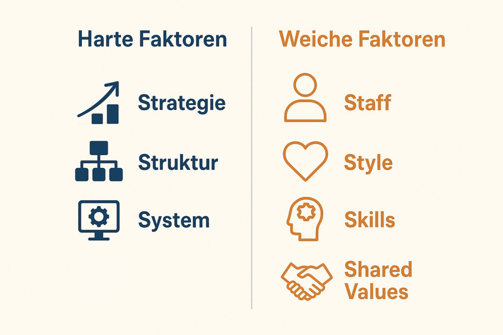 Kulturelle Transformation: Besonders wenn Du eine echte Kulturveränderung anstrebst, ist das Modell mit seinen „weichen Faktoren“ unverzichtbar.
