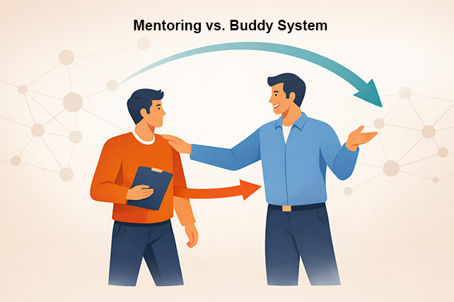 Das Buddy-System unterstützt neue Mitarbeitende in der Einarbeitung, während Mentoring langfristig auf Entwicklung und Karriereziele ausgerichtet ist.