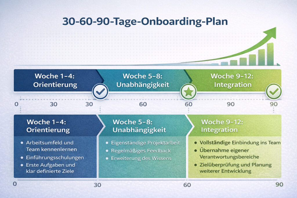 - Woche 9-12 (90 Tage): Vollständige Integration – Regelmäßige Aufgaben selbstständig übernehmen