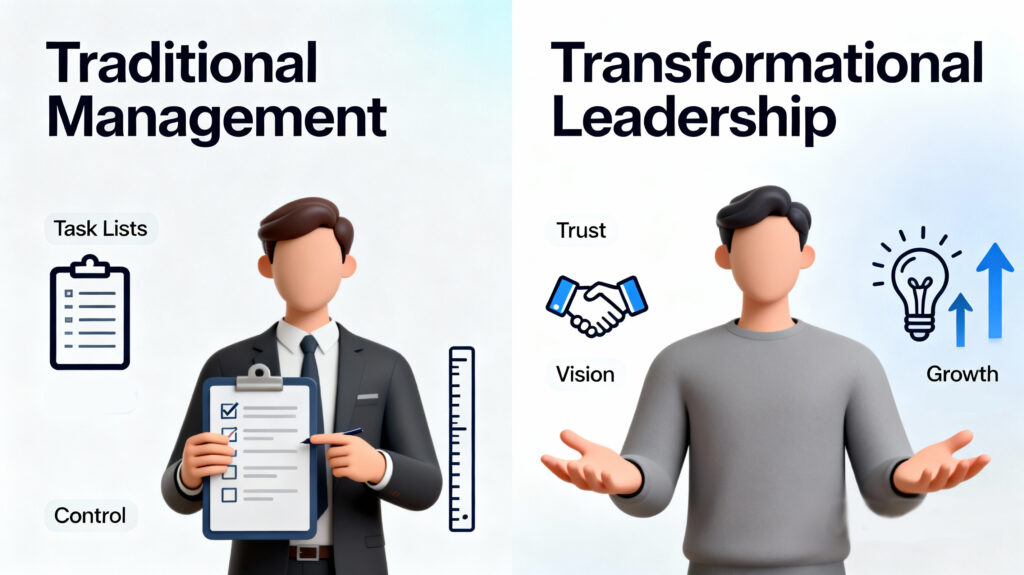 Transformationale Führung ist ein Führungsstil, der auf Inspiration, Sinn und persönliche Entwicklung setzt – statt auf Kontrolle und äußere Belohnung.